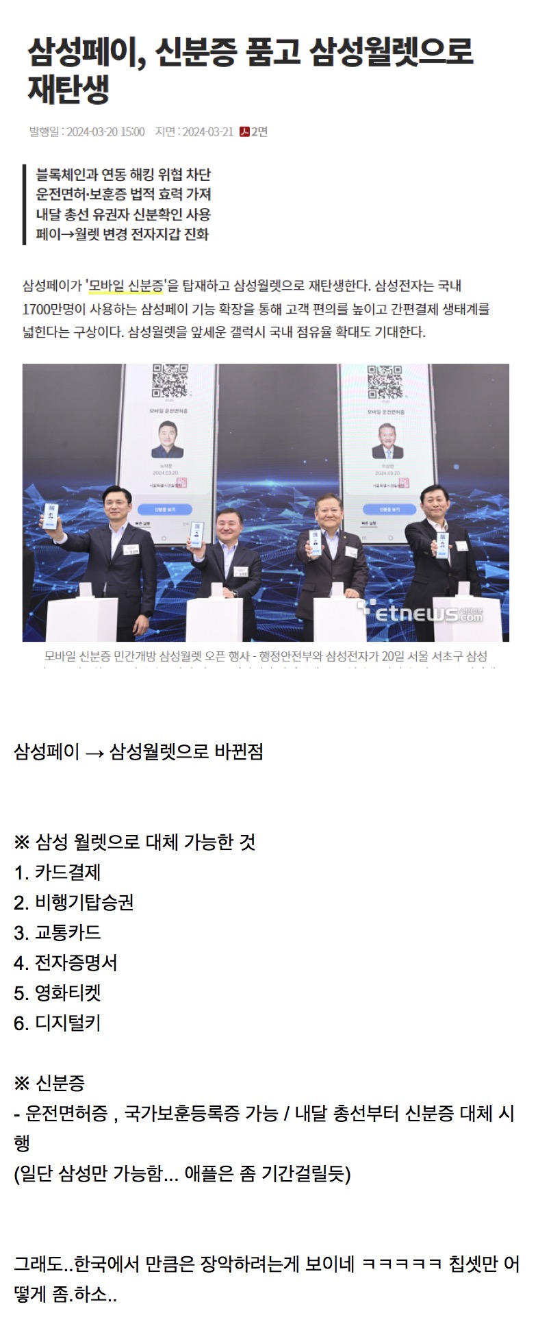 신분증/면허증 아직 은행이나 몇몇 업데이트 안된곳은 대체 불가한곳도 있다고 하네요!