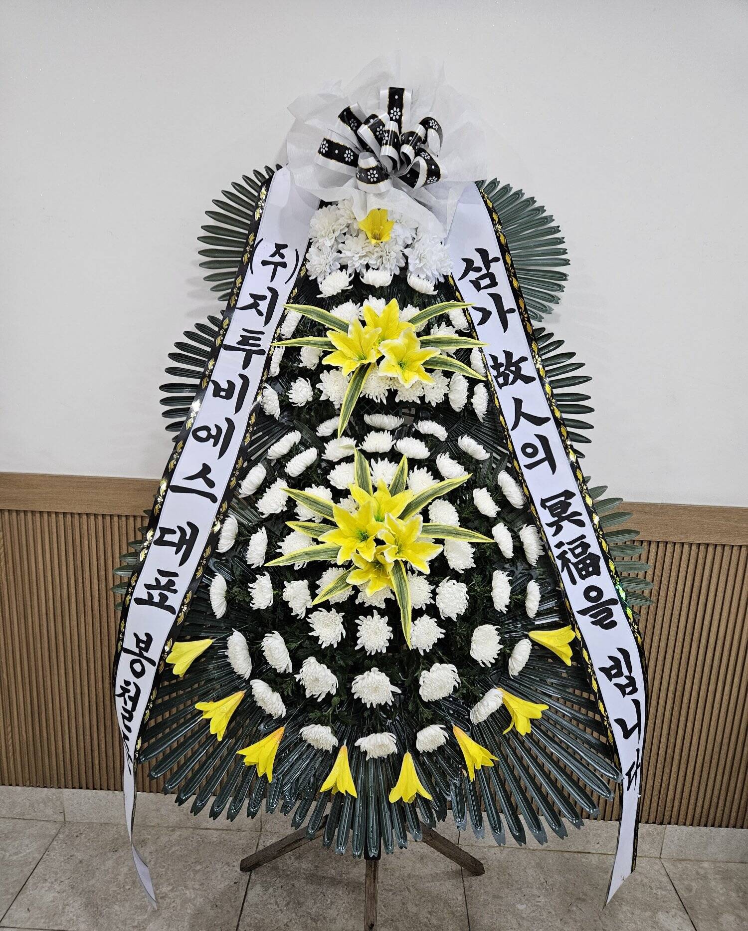 기본 화환이지만, 예쁘게 핀 국화들과